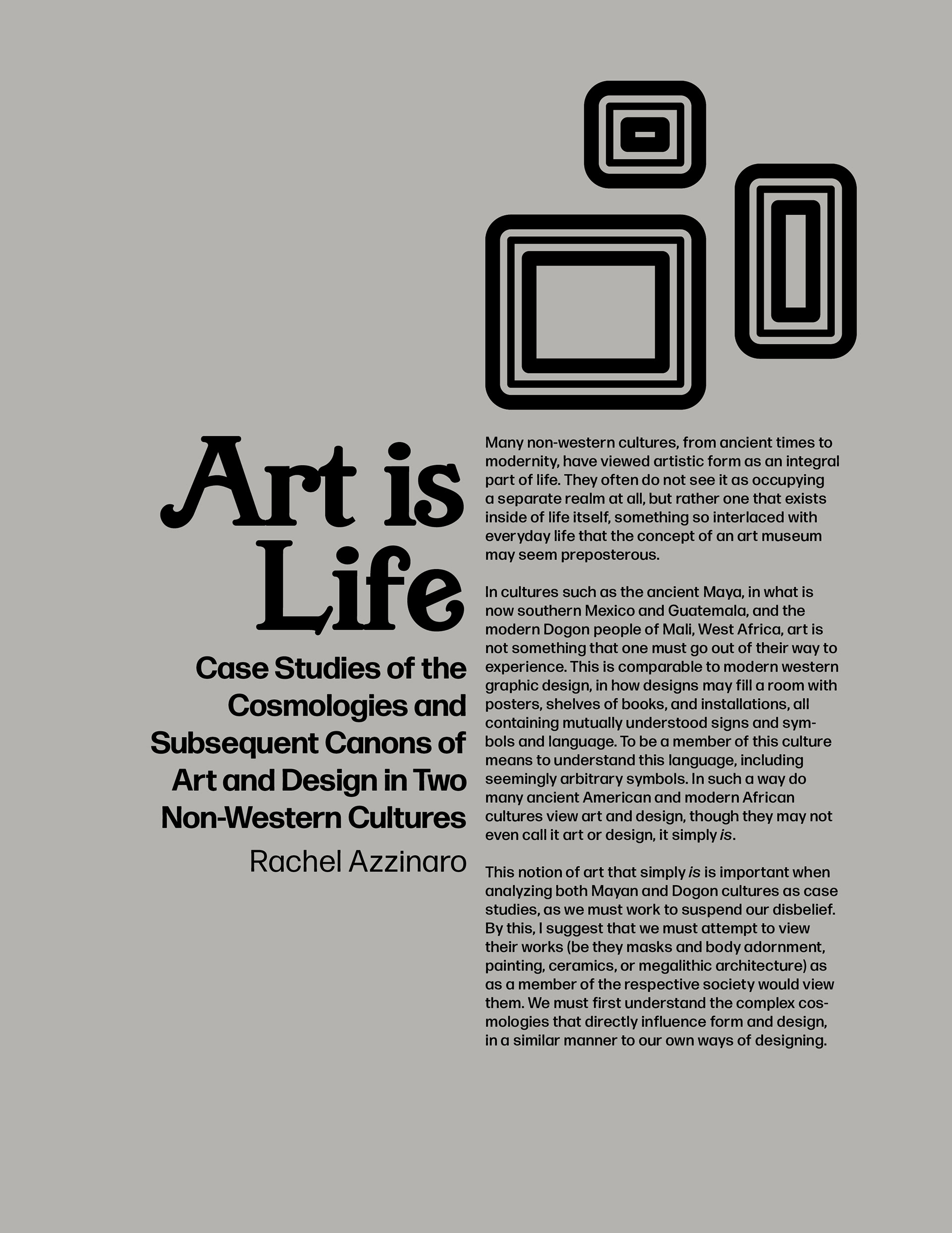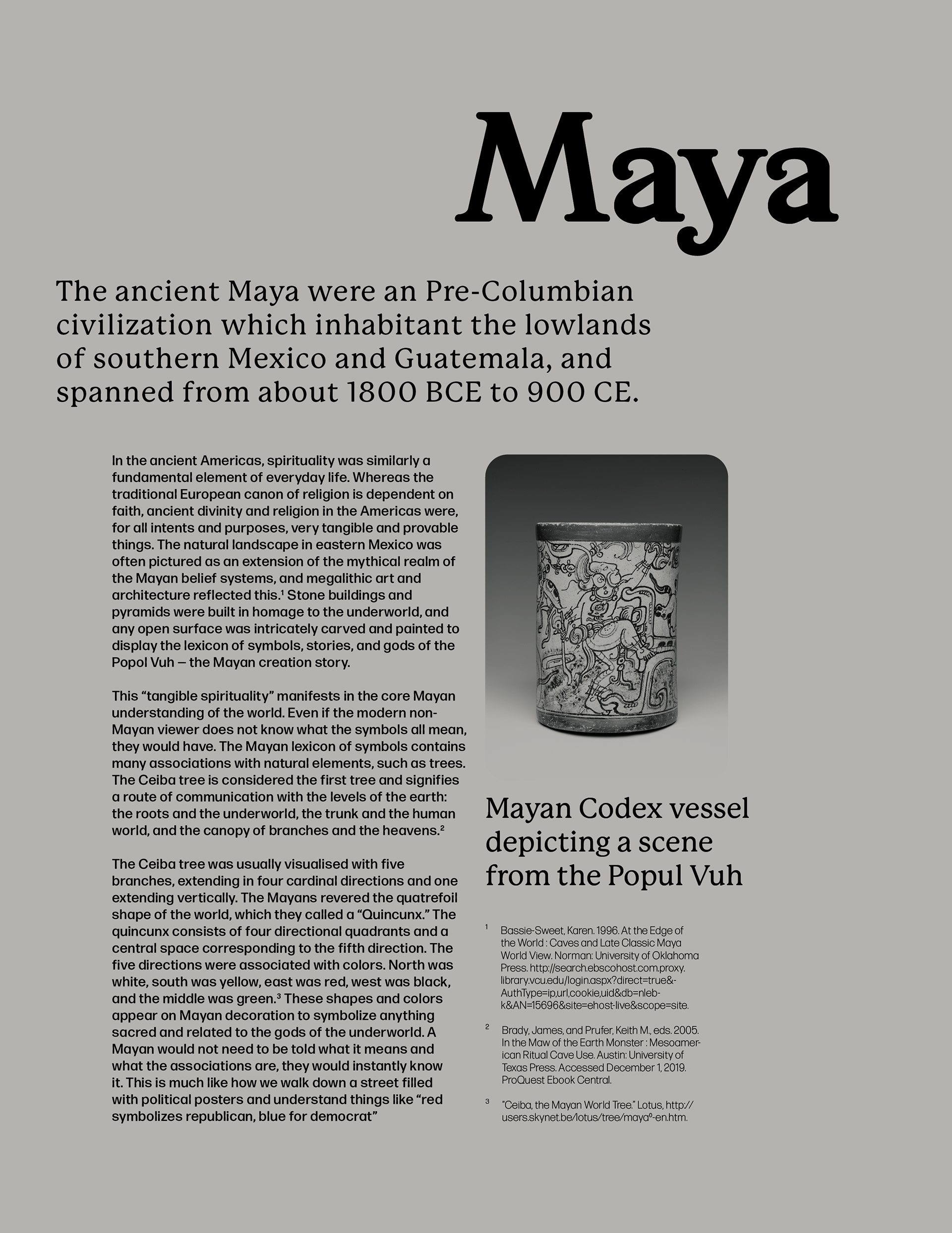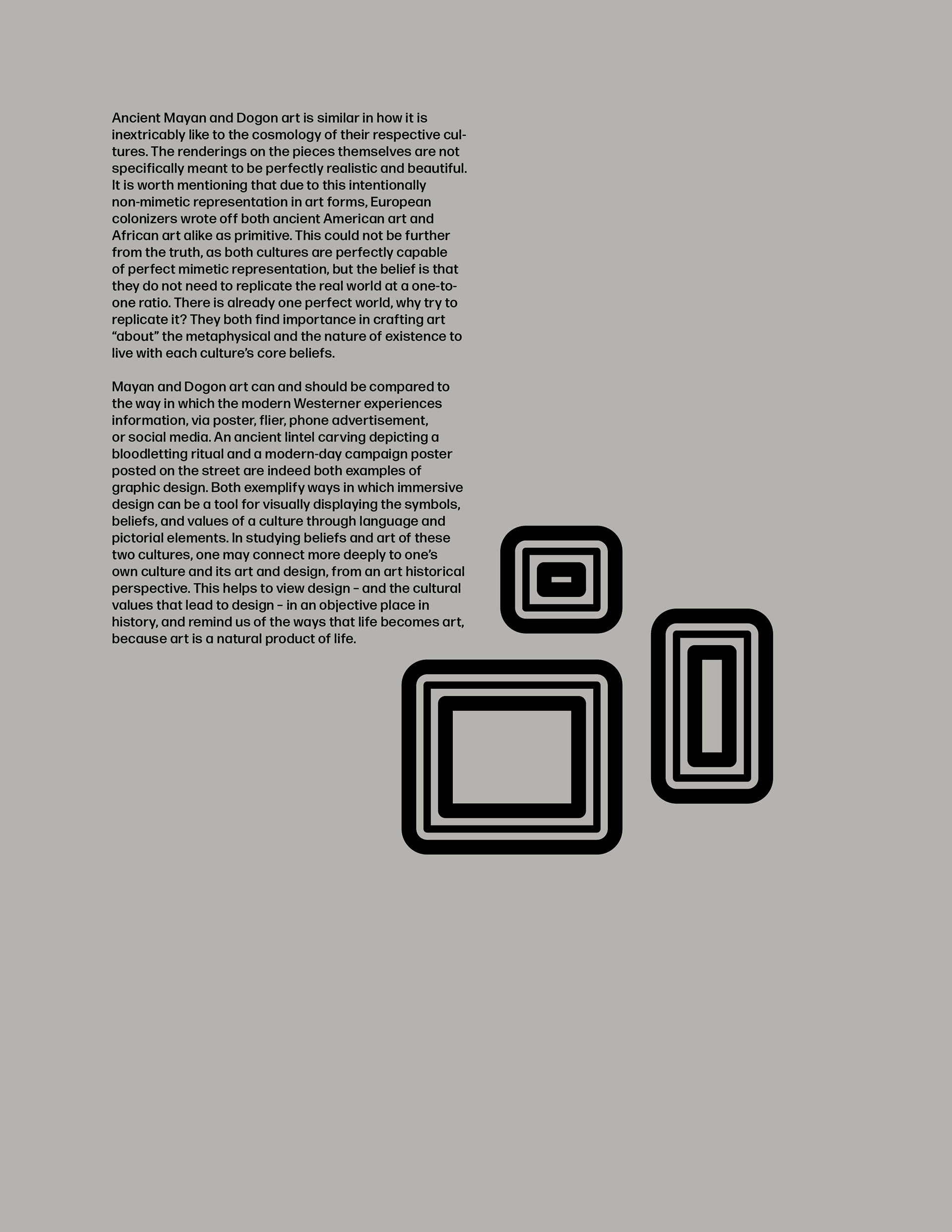 My contribution to a larger publication about the theory of graphic design. I combine my love of design and art history, as well as the research of Mayan art and architecture that I worked on in Mérida, Yucatán, Mexico in the summer of 2019.